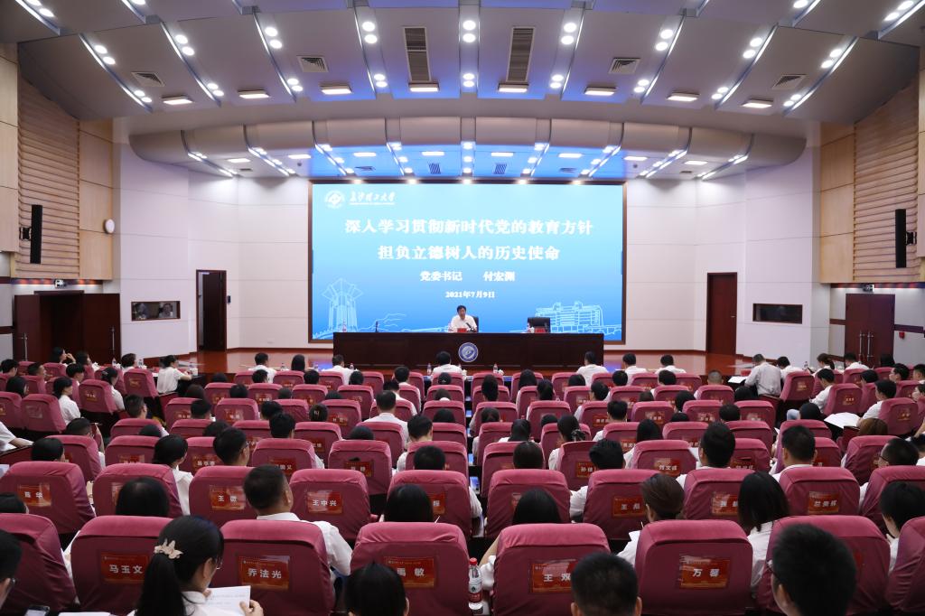 为全面贯彻落实新时代党的教育方针,落实立德树人根本任务,进一步增强认识、提高站位,7月9日上午,校党委书记付宏渊为全体学工系统干部作《深入学习贯彻新时代党的教育方针,担负立德树人的历史使命》主题报告。党政办公室、党委组织部、政策研究与督查室等职能部门负责人和全体学工干部参加。报告会由副校长钱国平主持。