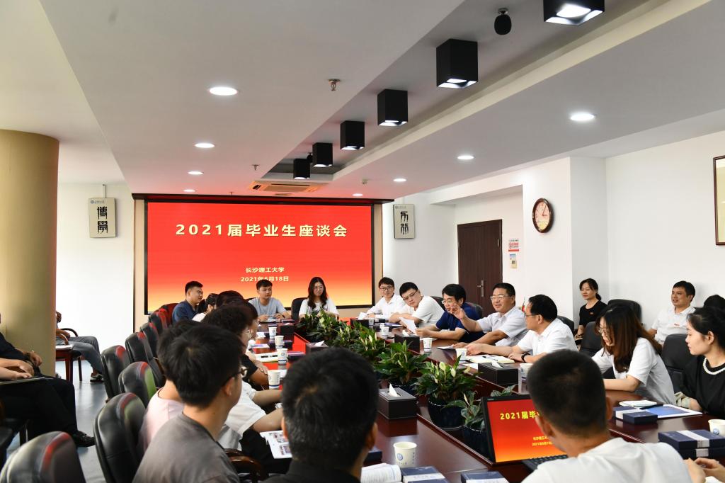 6月18日下午,2021届毕业生代表座谈会在云塘校区一办六会议室举行。校党委副书记、校长曹一家,校党委委员、副校长刘朝晖、钱国平出席,相关职能部处负责人以及25位毕业生代表参加座谈会。