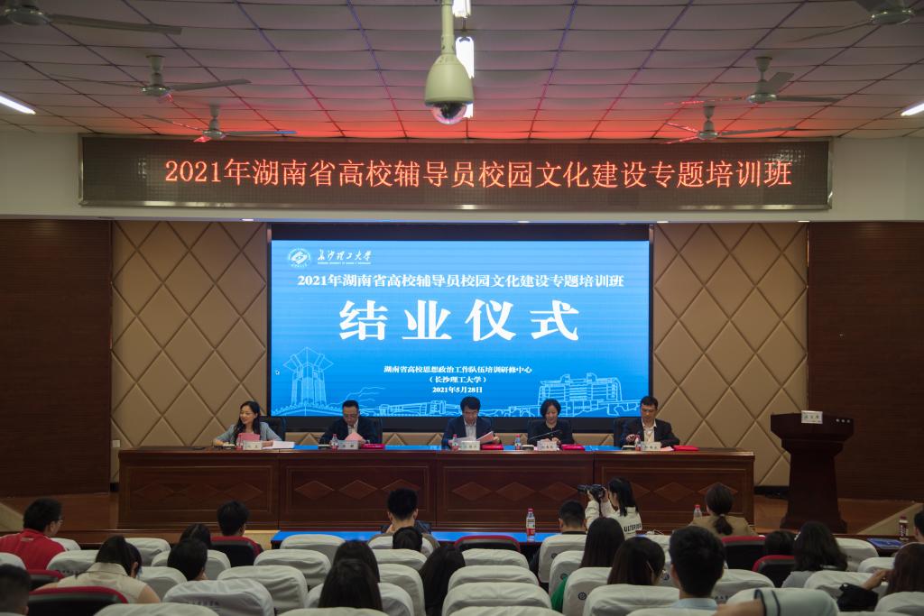 5月28日下午,2021年湖南省高校辅导员校园文化建设专题培训班在伟德结业。伟德副校长钱国平、省委教育工委宣传部部长刘书华、省委教育工委宣传部二级调研员陈解、伟德学工部部长邱国良和全体培训班学员参加结业典礼。结业仪式由伟德学工部副部长闾兰主持。