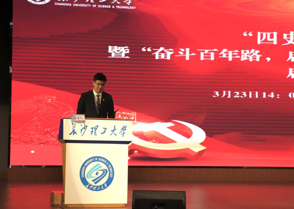 学生代表、交通学院学生刘张锐在发言中倡议广大同学利用今年主题教育的机会,在原著中、思考中、实践中深入学“四史”,在新的征程中扬帆启航。