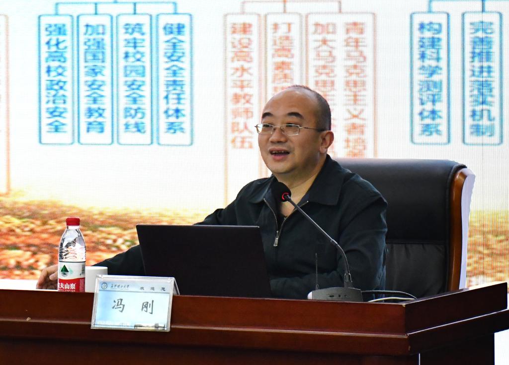 南华大学党委书记高山以《新时代高校思想政治教育治理的风险防控》为题,分析了新时代高校思想政治教育治理的风险点及其风险评估方式,从事前预防、事发预警、事中处置、事后恢复四个方面讲述了应对风险的防控措施。