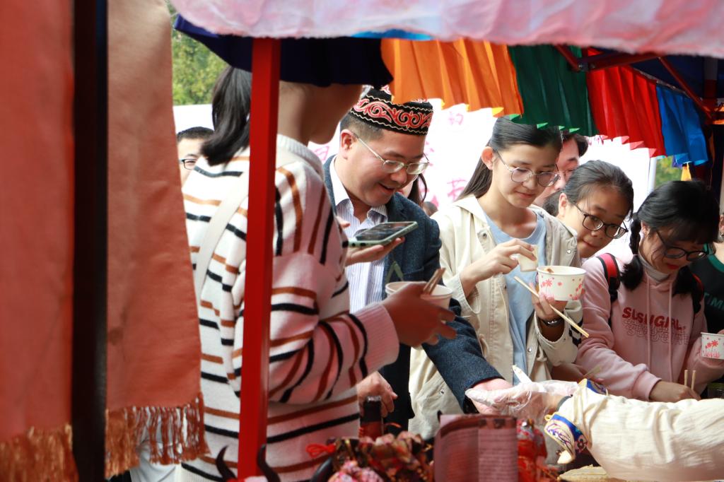 今年的民族文化节以“弘中国风,扬民族韵”为主题,展示了汉族、维吾尔族、哈萨克族、蒙古族、回族等民族文化。在各民族帐篷前,瑶族和土家族镶嵌着精美刺绣的服饰令人惊叹,侗族的特色卷饼、蒙古族的牛肉干、哈萨克族的塔米尔、维吾尔的烤全羊、藏族的青稞酒等特色美食令人垂涎。
