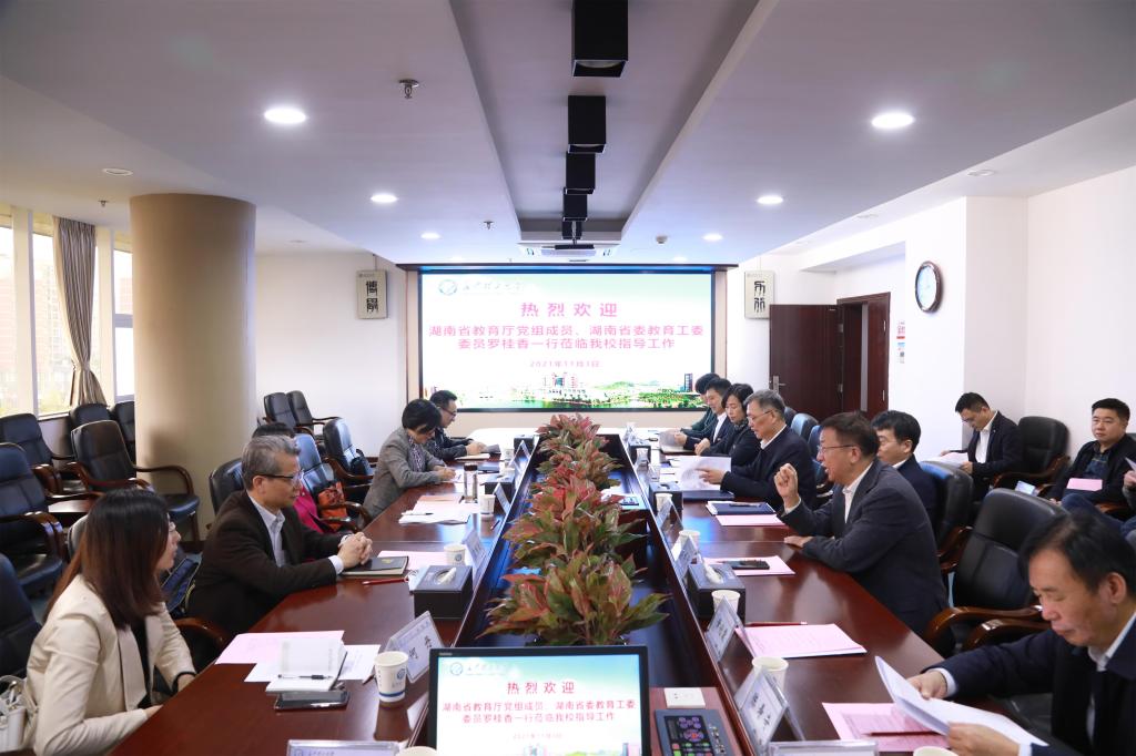 11月3日上午,湖南省教育厅党组成员、教育工委委员罗桂香一行来伟德调研“三全育人”、心理健康教育和国际交流工作,并走访了心理健康教育中心。工委宣传部部长刘书华、国际交流处处长周芳友、工委宣传部二级调研员陈解、国际交流处一级主任科员何丹参加。会前,学校党委书记付宏渊亲切接见了调研组一行。副校长谈传生、钱国平,党委委员、宣传部部长方琼及有关职能部门负责人参加调研。
