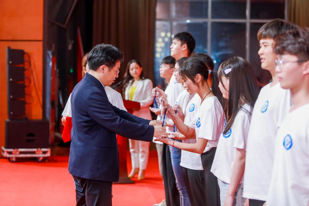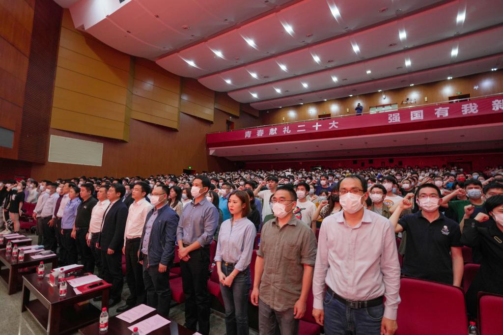 学工部(处)部(处)长邱国良宣读了2022年学生主题教育方案。组织部常务副部长陈曦宣读了《关于表彰优秀个人和先进集体的决定》。大会现场为受表彰的个人和集体代表颁奖。在学生代表蒋利杨的带领下,全场师生“向英雄学习,向前辈学习,向榜样学习;不负人民、不负时代、不负韶华”的铮铮誓言响彻会场。