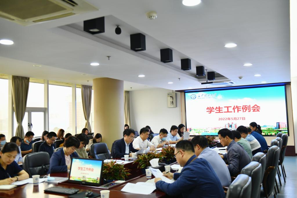 5月27日下午,钱国平副校长在一办公楼六会议室主持召开2021-2022学年第二学期第四次学生工作例会,学校相关职能部门及各学院学生工作负责人参加会议。