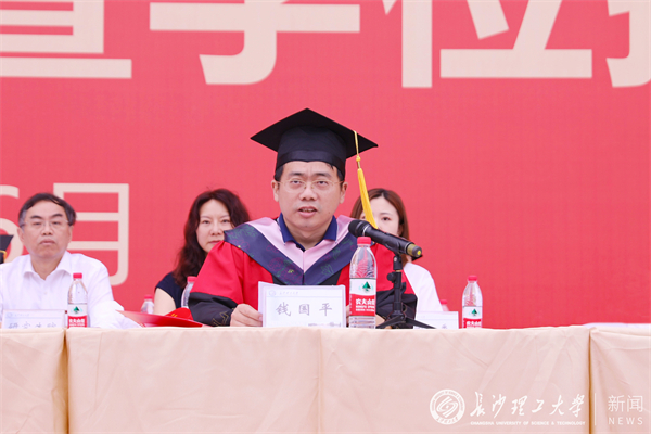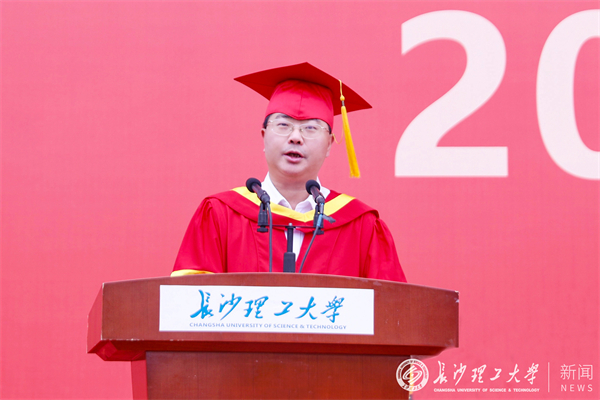 曹一家向即将开启新篇章、踏上新征程的8347名本科生和1770名研究生表示热烈祝贺,向所有辛勤培育学生成长成才的教职工以及默默守护的家长致以衷心感谢和崇高敬意。他指出,同学们用青春梦激扬中国梦,正在成为科技创新的重要力量;脱贫攻坚战取得的全面胜利有同学们的辛勤汗水;疫情防控取得的重大战略成果有同学们的勇于担当;同学们没有辜负时代赋予的责任,在成长的路上书写了属于自己的精彩华章。当前,学校已经迈入了本科生、研究生教育“双主体”协同发展的新阶段,越来越接近实现长理的“百强梦”。在进入全面建设社会主义现代化国家、向第二个百年奋斗目标进军新征程的重要一年,同学们即将投入到时代洪流中,书写愈加精彩的青春答卷。曹一家勉励同学们应始终保持“人生能有几回搏”的奋斗精神,成为“真爱国、真感恩、真本领”的人才,并对大家提出三点希望:一是守正不阿,为本心立德;二是博学勿怠,为人民立言;三是力行拓新,为时代立功。