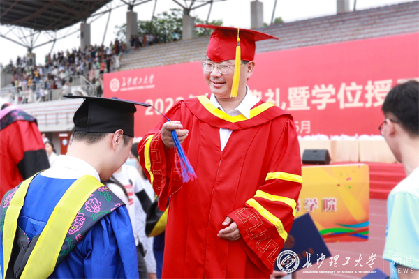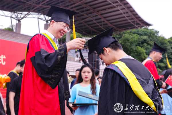 毕业典礼后,校领导和导师代表为毕业生一一拨穗正冠并颁发学位证书。