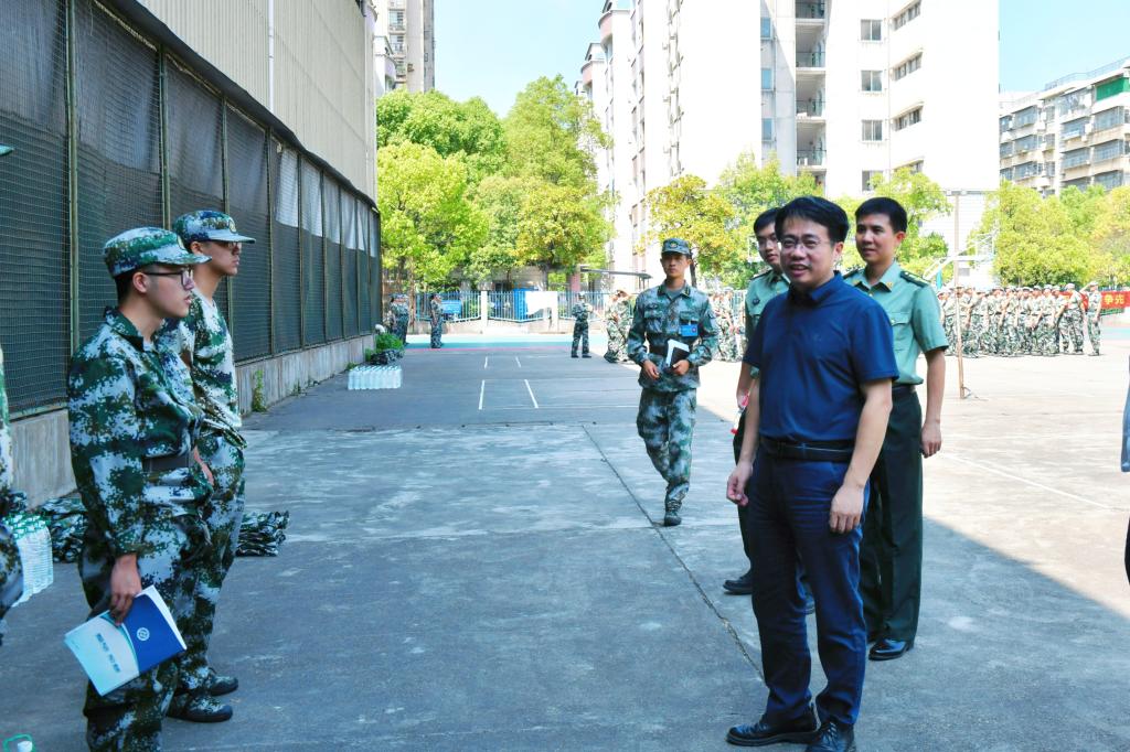 9月3日上午,副校长钱国平在学工部部长邱国良、副部长王煜坤等的陪同下走访军训场地,看望慰问了正在军训的2022级新生。