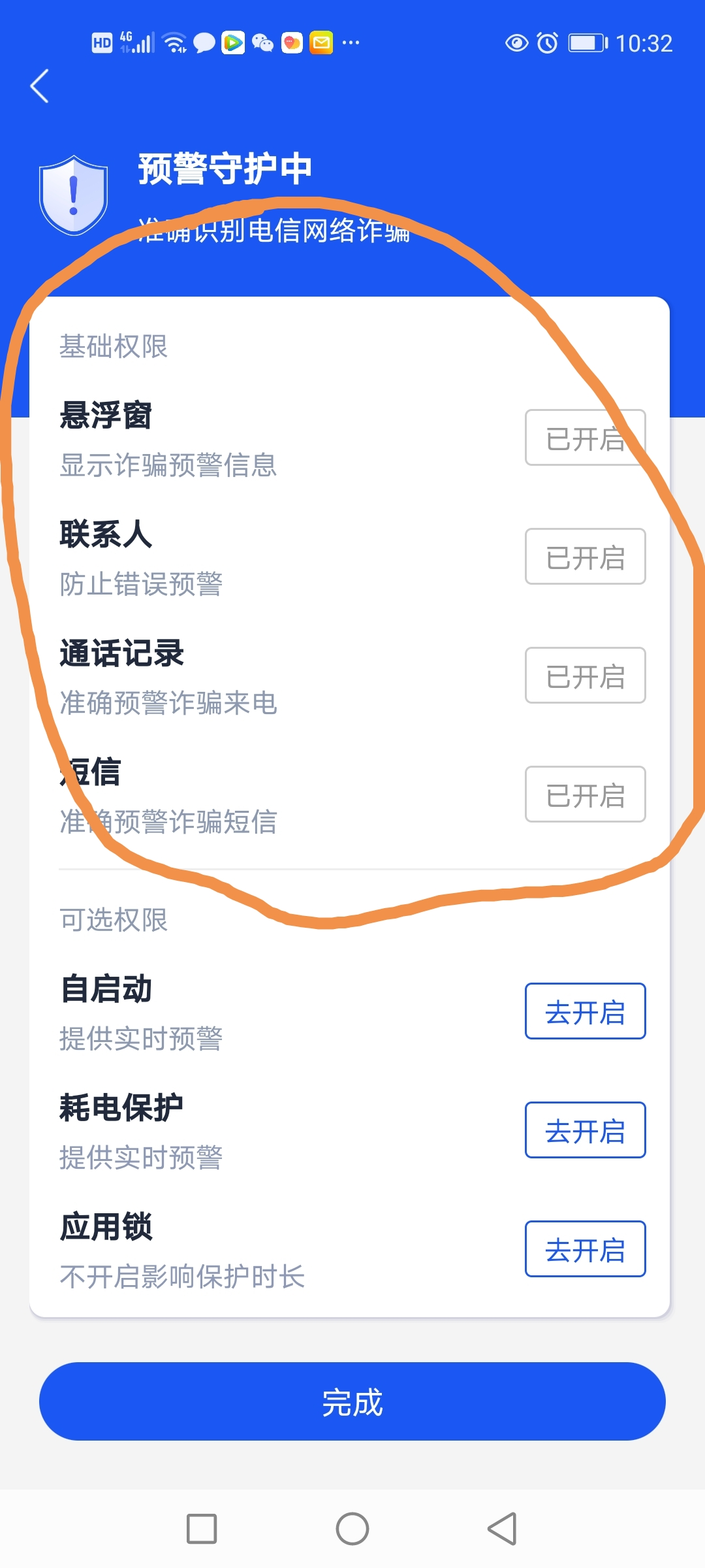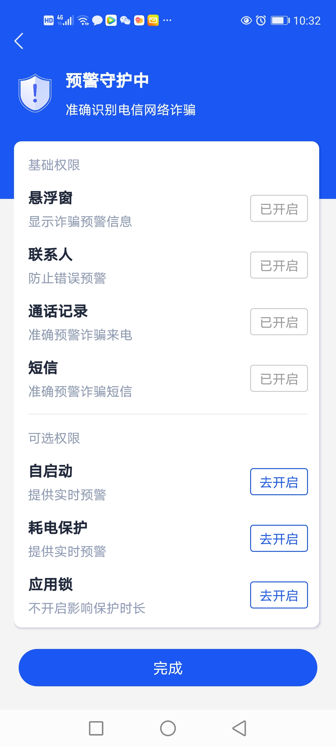 3.打开首页中的“来电预警”。(如截图所示,从上往下四个权限要求全部打开)。如图3: