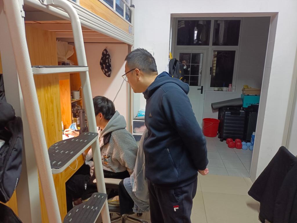 为进一步关心同学们的生活学习状态,增进师生交流互动,筑牢防疫安全线,保障学生安全,了解学生的思想动态。12月4日晚,化学学院党委书记宋刘斌、辅导员王彪走访了学生寝室,与学生们亲切交流,关心疫情期间学生的心理及学习生活状态,回应学生关切的问题。