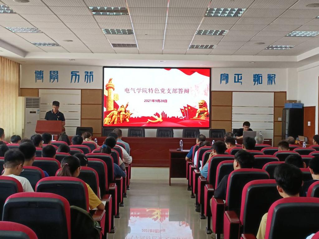 9月28日下午,电气学院于工一B503组织开展2020-2021学年学生党支部特色创建工程答辩。经管学院关工委副主任陈均杰,能动学院关工委副主任顾社民,电气学院关工委副主任罗玉雄、党委书记符慧林、副书记任艮丰,校党委组织部组织科科长邵巧艳及电气学院辅导员代表一同出席。答辩会由学院党建辅导员黄文韬主持。