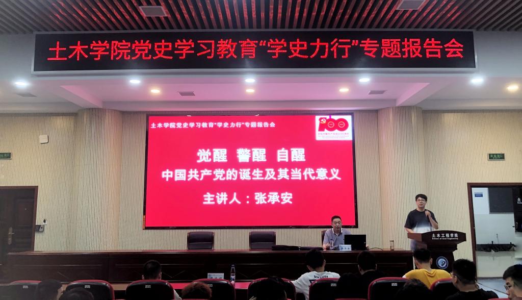 6月10日晚,土木学院党史学习教育“学史力行”第四专题报告会在工科二号楼B302学术报告厅举行。马克思主义学院张承安教授应邀主讲,院团委书记董治佑及全体本科生党员参加。