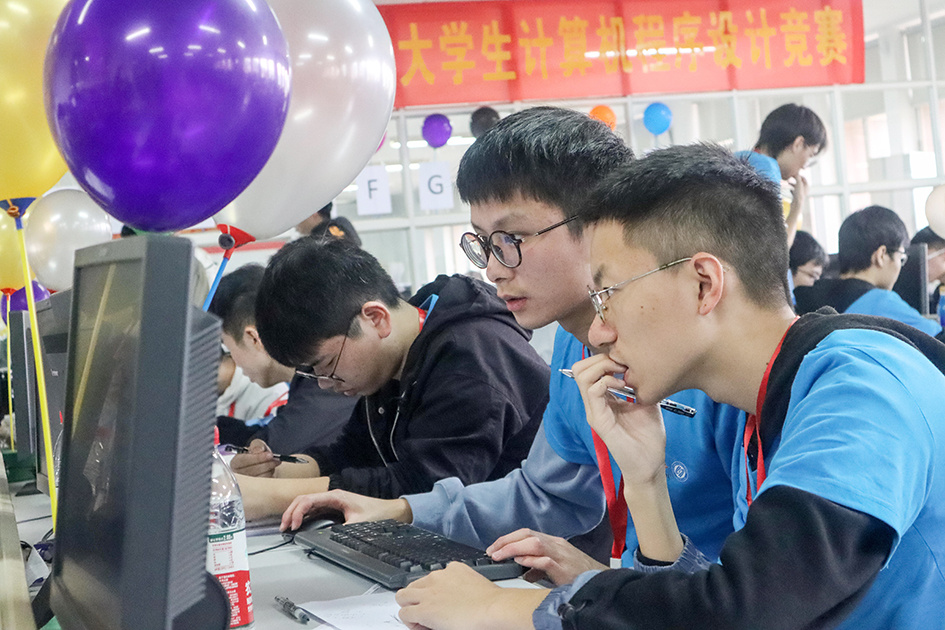 ACM程序设计、应用开发和机器人三项比赛难度都不小,其中公认的最“烧脑”的竞赛项目莫过于ACM程序设计竞赛。ACM程序设计竞赛在国际上已经过近30多年的历史,现在已经发展成为最具国际影响力的大学生计算机竞赛。这项竞赛也是今年竞赛中参赛高校最多,参赛人数最多的项目,项目要求学生3人一组,仅提供一台电脑,使用C、C++、Pascal或Java中的一种编写程序解决11个算法问题,连续5小时不停,采用国际通用的ICPC赛制,机器OJ系统在线运行进行判定,答错一题罚时20分钟。