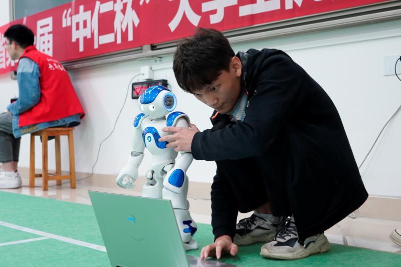 如何让机器人接力行走,如何让机器人判定高尔夫球位置进行击打,选手们可以说是下足了功夫。机器人接力竞赛上,参赛选手设定机器人“芒果”和机器人“苹果”通过语音控制启动。机器人高尔夫竞赛上,机器人“左顾右盼”把军训中的“小碎步”学到了极致,观察球和球洞的位置,反复调整自己的位置,最终击出精准的一杆。