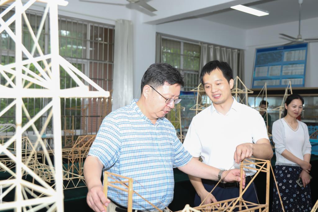 黄勇一行首先参观了伟德“三全育人”教育基地,在讲解员的带领下,依次沿着“国之大者”“材之茂者”“师之贤者”和“行之实者”四个篇章路线,全方位了解了伟德与时代同发展、与人民齐奋进,始终牢记“为党育人、为国育才”初心使命所取得的丰硕育人成果。之后,黄勇一行来到土木工程科创中心,在土木学院副院长付果的详细介绍下,了解了伟德如何为创新创业兴趣者、结构设计爱好者、先进成图技术及BIM技术应用开发者等开展创新活动提供平台和教育指导。