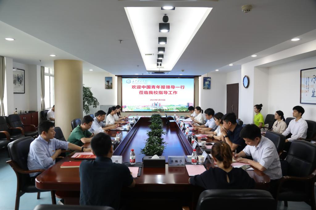 5月30日下午,中国青年报党委委员、编委兼共青团媒体板块总监黄勇一行来伟德调研指导青年创新创业工作,共青团湖南省委副书记叶妙等有关领导,伟德党委委员、副校长钱国平,党委委员、宣传部部长方琼,教务处、校团委、创新创业学院、土木学院、能动学院等有关负责同志陪同调研。