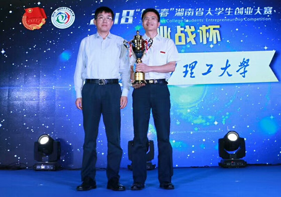 5月26日至28日, 2018年“创青春”湖南省大学生创业大赛终审决赛在长沙举行,伟德学子在比赛中表现出色,获得金奖5项、银奖4项、铜奖1项,以团体总分第一名的好成绩再次勇夺最高奖项——“挑战杯”。