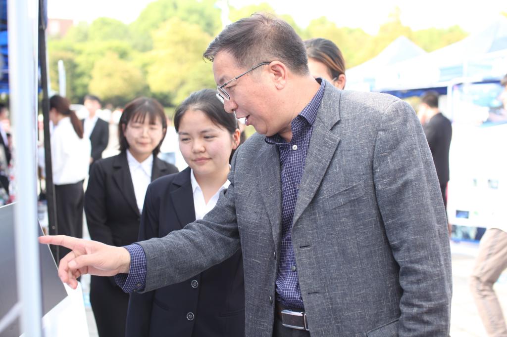 比赛期间,付宏渊书记看望参赛师生并与之亲切交流,认真听取各项目参赛成员对作品的介绍,详细了解项目进展情况,并针对参赛作品提出了宝贵的意见与建议,鼓励同学们要勇于迎接挑战,为实现梦想而努力奋斗。终审决赛分成现场展示及会议答辩两个环节。各参赛团队通过展板和视频、PPT等多媒体手段向评审专家介绍研究情况、阐述研究成果,充分展现出项目的创新性。由各相关领域的评审专家认真观看参赛作品、听取各项目团队介绍,着重就专业性、创新点、可行性、实践性等方面进行提问,并针对作品的不足提出了宝贵的修改建议,对参赛选手进一步优化作品有重要的指导意义。