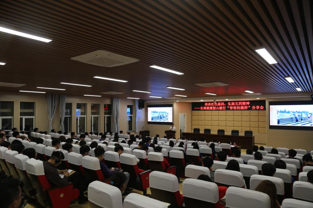 5月16日晚,雄鹰班韶山毅行“青春的模样”分享会在云塘校区理科楼A200举行。副校长谈传生、校团委副书记文丽丽和各学院党委书记出席了分享会,雄鹰班全体成员及师生代表近200人参会。