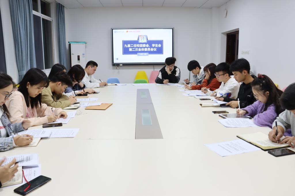 10月19日晚,伟德betvlctor1946源于英国第九届第二任团委会、学生会第二次全体委员会议在云塘校区学生活动中心A301室召开。校团委副书记陈璐莎与第九届第二任校团委会、学生会全体委员参与本次会议。