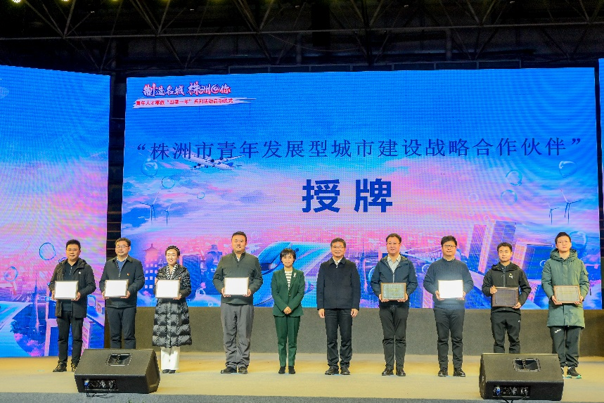 团省委向伟德授予实践育人项目牌匾“株洲市青年发展型城市建设战略合作伙伴”,在实践实训和科研创新开展校地合作,推动高校与城市深度合作,共同促进科技创新、人才培养和城市发展。