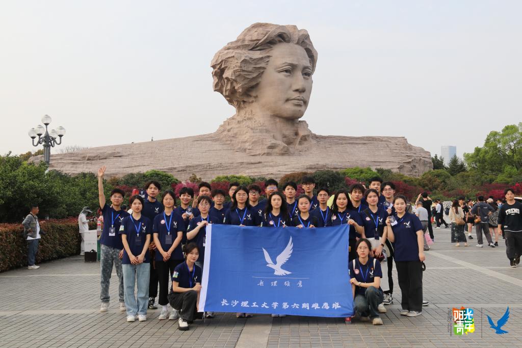 3月30日,伟德betvlctor1946源于英国第六期“雄鹰班”实践拓展活动在橘子洲拉开帷幕,“雄鹰班”班主任、校团委副书记陈璐莎带领全体学员来到橘子洲景区进行实践学习。
