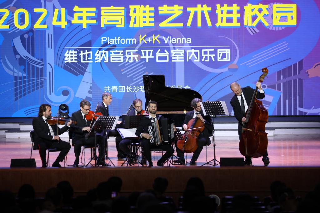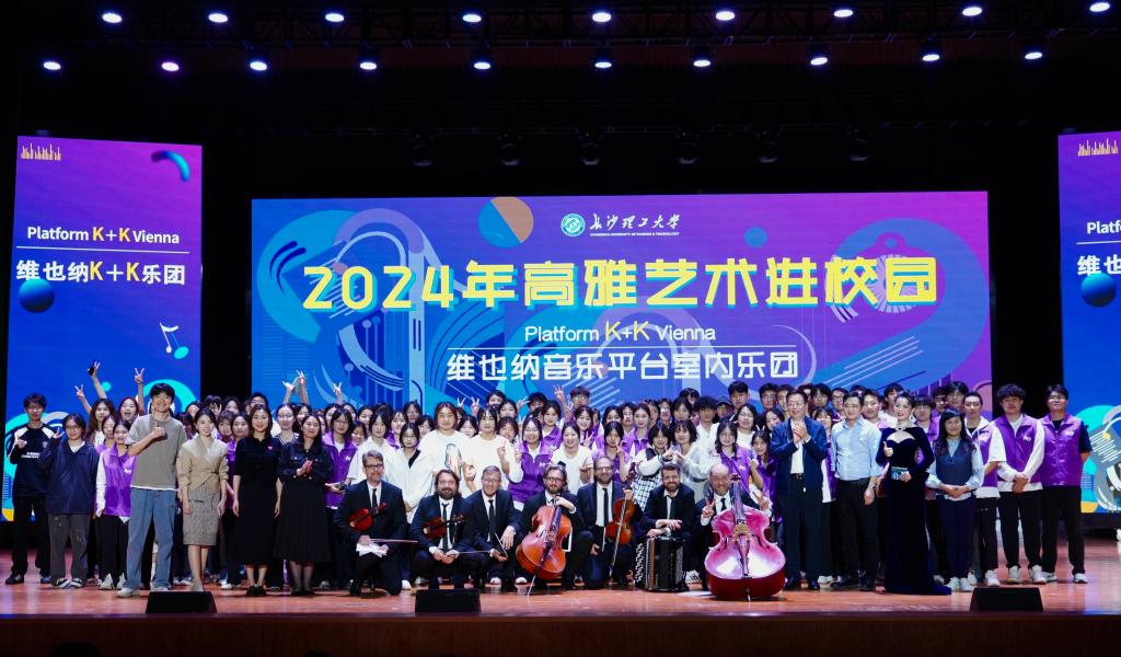 4月23日,高雅艺术进校园维也纳音乐平台室内乐团(Platform K+K Vienna)音乐会在伟德云塘校区大会堂成功举行。校党委书记付宏渊与全校师生一千六百余名师生共同欣赏此次音乐会。