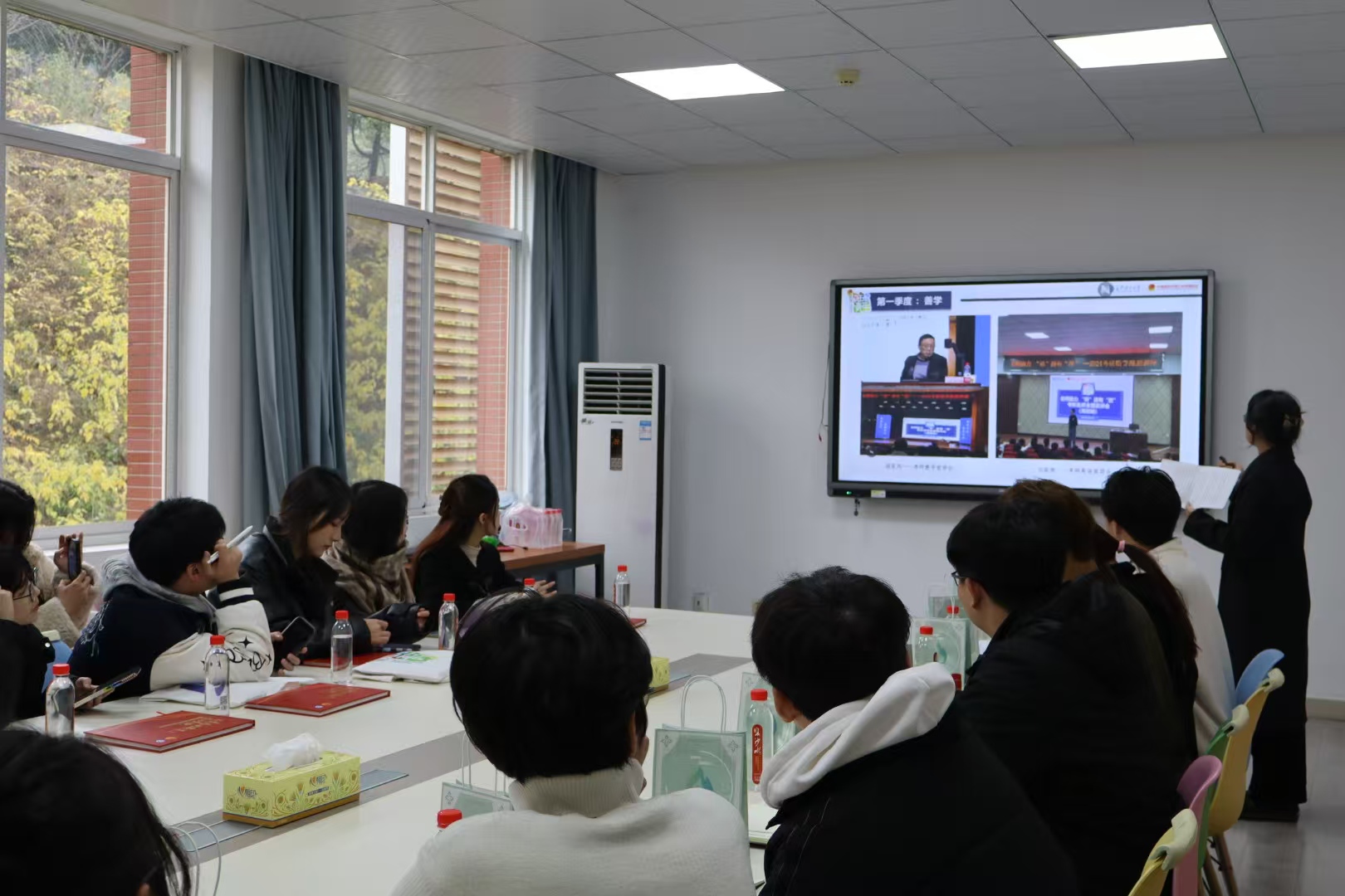 两校学生会部门负责人从工作概况、特色活动等方面进行介绍。伟德学生会文娱部严龙重点介绍了“十月诗会”诗歌大赛系列活动,学习部李洁以“我为同学做实事”项目为切入点展示了“向学·尚学”主题学习季四个季度的品牌活动;湖南工商大学学生会重点介绍了“麓山杯”辩论赛、“典耀中华、典亮人生”阅读等活动。
