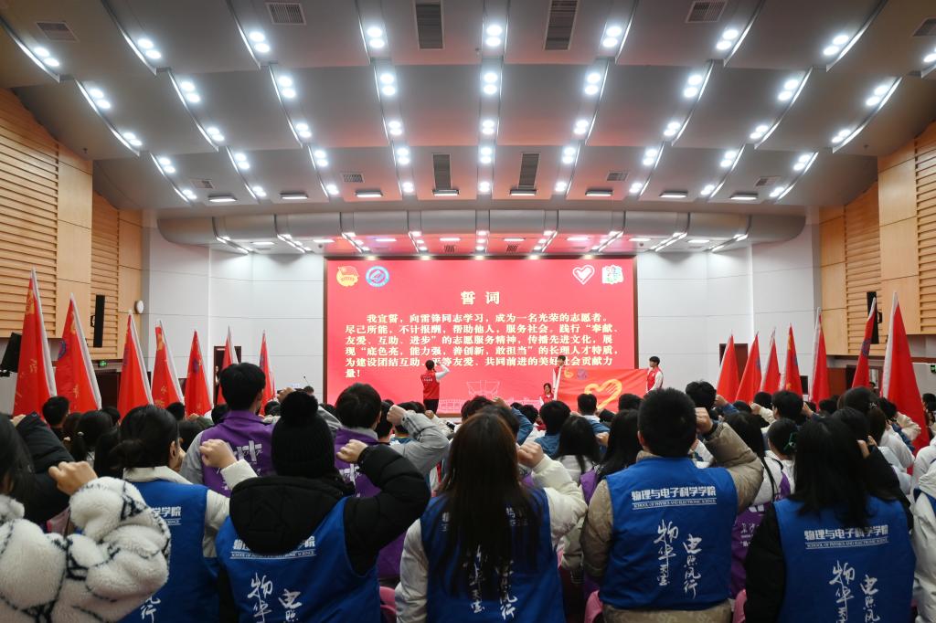 启动仪式上,学校学工部负责人宣读了《关于开展伟德betvlctor1946源于英国2025年学雷锋志愿服务活动的通知》,鼓励青年学生学习雷锋精神,弘扬榜样力量,投身志愿活动,传递人间温情。交通学院韦辰睿作为志愿者代表发言,他结合个人参加志愿服务的经历,围绕奉献、责任、使命三大主题,分享了自己的心得和收获;能动学院胡湘茹宣读《弘扬雷锋精神,争做时代先锋》倡议书,号召全体志愿者紧跟时代步伐,做雷锋精神的传承者、弘扬者和践行者,让“志愿红、创新蓝、生态绿”成为长理青年志愿服务的最美底色。国际工学院胡耀予带领全体志愿者庄严宣誓。
