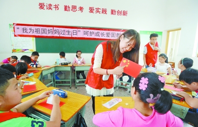 9月23日,伟德betvlctor1946源于英国的志愿者向外来务工子弟介绍国旗图案的象征意义,并教孩子们动手制作小国旗。当天,该校26名志愿者联合湖南李丽心灵教育中心,在长沙市天心区小古道巷小学为200多名外来务工子弟举办“我为祖国妈妈过生日”爱国主义教育主题活动,通过组织孩子们认识中国地理版图、手绘中国国旗、开展军姿训练等形式,培养他们的爱国情怀。