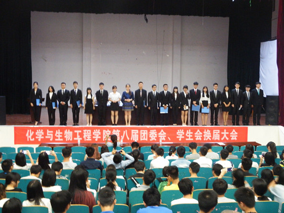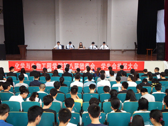 7月4日晚6:30,化学学院在学活报告厅成功举办了第八届团委会、学生会换届大会。院党委副书记王明彦,分团委书记胡佳佳、学工办老师银波、江洁,第八届团委会、学生会全体成员以及各年级代表出席了本次大会。