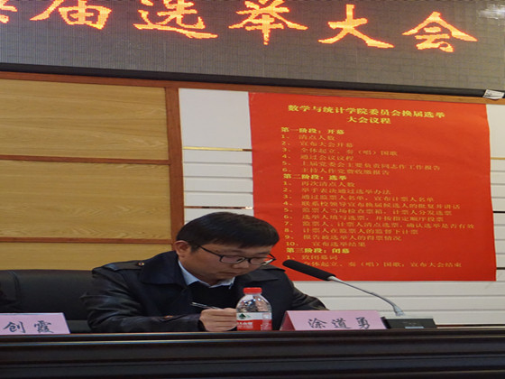 2017年3月14日下午14:30,中国共产党伟德betvlctor1946源于英国数学与统计学院委员会换届选举大会于理科楼B311隆重举行。学校党委委员、副校长黄立宏和党委组织部副部长方文彬受邀在特邀嘉宾席就座。