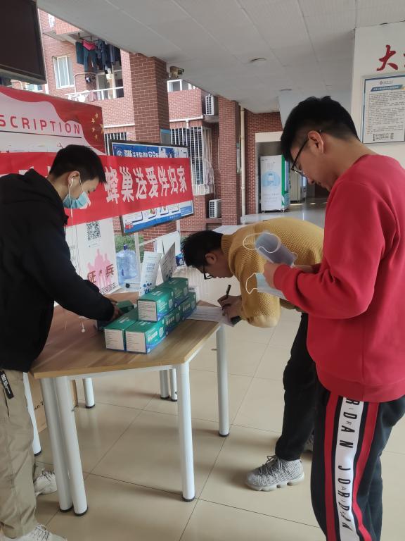 了解到学生疫情防护物资准备不足后,学院立即采购了2000千余个口罩和200余套由口罩、免洗液、湿纸巾、小瓶酒精等组成的“防疫小套装”,并依托“蜂巢”志愿服务团队在行健轩三栋、敏行轩分别设立了防疫物资“爱心小超市”。学生可以凭借易班离校审批界面免费到“爱心小超市”领取所需口罩等防疫物资,如旅途较远,还可以领取“防疫小套装”一份。此次活动作为志愿服务活动,同时鼓励领取防疫物资的同学自愿支付0-10元不等的爱心基金,作为“爱心小超市”经营收入,并将在后期用于宿舍园区建设或志愿服务等公益项目。自1月14日中午“爱心小超市”运营以来,目前共筹集爱心基金1000余元。