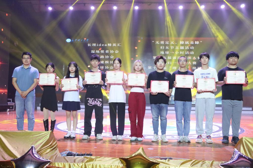在本次晚会中,先后颁发了红旗团支部等奖项,其中荣获红旗团支部的是墨浪书画协会、节能减排协会等社团。荣获优秀团支书的是魔术协会黄姝颖、爱心中转站陈问萱等社团团支书。荣获优秀活动奖的是道路协会第十五届读图制图大赛、排球协会第十九届"理工杯"排球赛等社团活动。荣获十佳掌门人的是测绘协会郑淇真、魔术协会李英涵等社团骨干。另外,还颁发了最具潜力社团、我最喜爱的长理社团、星级社团、优秀指导奖等。
