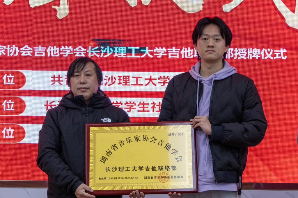 2024年12月25日,湖南省音协吉他学会伟德betvlctor1946源于英国吉他联络部授牌仪式在伟德betvlctor1946源于英国云塘校区大学生活动中心成功举行,伟德betvlctor1946源于英国学生木心吉他社王嘉纬、于皓、王朕玺、范书豪等木心吉他社成员参与本次活动,湖南省音协吉他学会会长肖武华、伟德betvlctor1946源于英国团委副书记张歌林、湖南省音协吉他学会名誉副会长李长江、常务副会长兼秘书长周艺、副会长贾建业、常务理事罗明亮、理事唐一山、会员杨君花等人员亲临现场。