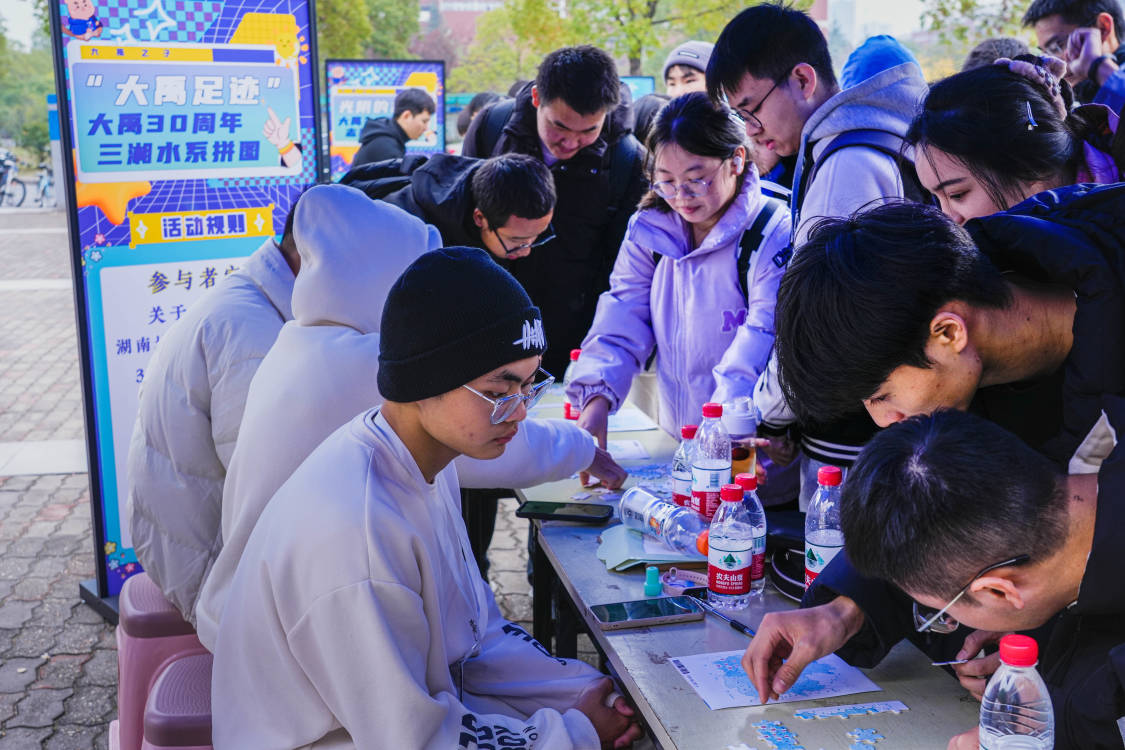在活动现场,大家通过观看故事展板,深入了解了大禹之子成立至今的点点滴滴,对大禹之子这三十年间的志愿服务事迹感触颇深,并写下了最真挚的祝福。现场还设有“大禹足迹”拼图活动,参与者可通过拼图了解大禹之子在湖南地区的志愿足迹,直观感受到大禹之子的脚步遍及三湘四水;开展“筚路蓝缕寻禹迹”配对连连看,了解多处红色基因水利风景区。一系列的趣味小游戏,让参与者体验快乐赢取奖品的同时,也加深了他们对志愿服务活动的向往,一位大一新生在留言板写道:“美哉我中华水利风景区,多娇多彩,我愿‘禹’你同行,守护这份美好!”