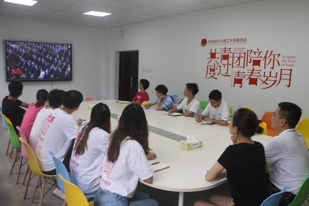 6月29日上午10时,校团委组织全体员工及学生会、学社联等学联组织学生干部在学生活动中心A301会议室集中收看“七一勋章”颁授仪式。