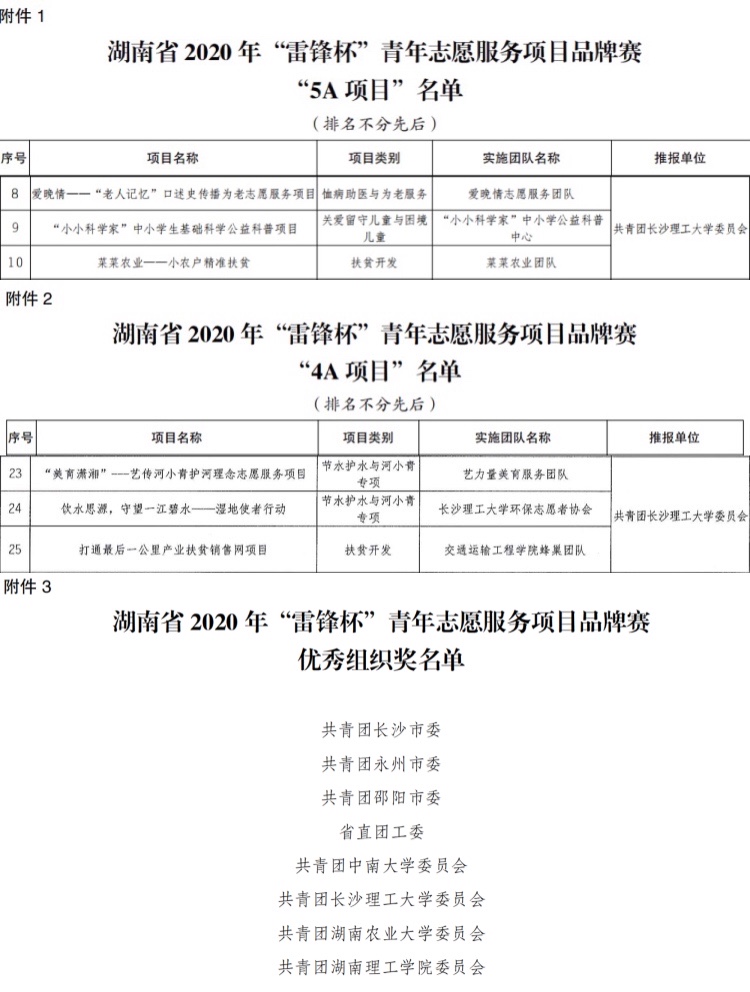 近日,由共青团湖南省委、湖南省青年志愿者协会等部门共同主办的湖南省2020年“雷锋杯”青年志愿服务项目品牌赛决赛落下帷幕。经项目申报、组织推报、资格审查、网络评审、项目公示、实地调研、集中授课、决赛路演答辩和专家评审多个环节,伟德物电学院《“小小科学家”中小学生基础科学公益科普项目》、艺术学院《爱晚情—“老人记忆”口述史传播为老志愿服务项目》及《菜菜农业—小农户精准扶贫》3个项目被授予 “5A项目”称号,交通学院《打通最后一公里产业扶贫销售网》、艺术学院《“美育潇湘”——艺传河小青护河理念志愿服务项目》及化学学院《饮水思源,守望一江碧水——湿地使者行动》3个项目被授予“4A项目”称号,伟德获评优秀组织奖。