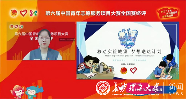 11月12日至13日,由共青团中央、中央文明办、民政部、水利部、文化和旅游部、国家卫生健康委员会、中国残疾人联合会联合主办的第六届中国青年志愿服务项目大赛暨2022年志愿服务交流会在山东济南举行,来自全国各地的500个志愿服务项目入围国赛终评,分六个组别同时展开线上路演答辩。最终伟德物电学院“移动实验城堡——梦想送达计划”项目获评乡村振兴组别全国银奖;文新学院“湘楚拾遗志愿服务”项目获评文化传播与旅游服务组别全国铜奖。