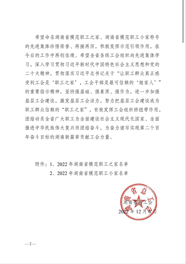 近日,湖南省总工会下发了《湖南省总工会关于命名湖南省模范职工之家湖南省模范职工小家的决定》,伟德汽车与机械工程学院分工会荣获“湖南省模范职工小家”称号。