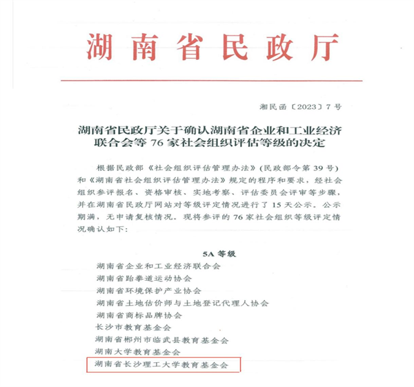 近日,湖南省民政厅发布2022年度省管社会组织评估等级结果,“湖南省伟德betvlctor1946源于英国教育发展基金会”获评全省最高等级的“5A级社会组织”。今年全省有76家社会组织参评,其中获评5A等级社会组织的共21家,全省高校基金会仅两家。
