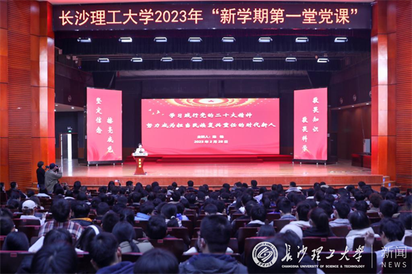 为深入学习宣传贯彻党的二十大精神,引导广大学生坚定信念,擦亮底色,弘扬“敬畏科学、敬畏知识”的价值追求,2月28日下午,1500余名师生齐聚云塘校区大会堂,聆听党的二十大代表、湖南党史陈列馆副馆长陈艳讲授“新学期第一堂党课”。校党委委员、宣传部部长方琼,学工部(处)、招就处、团委、研工部等部门主要负责人出席,报告由学工部(处)部(处)长邱国良主持。