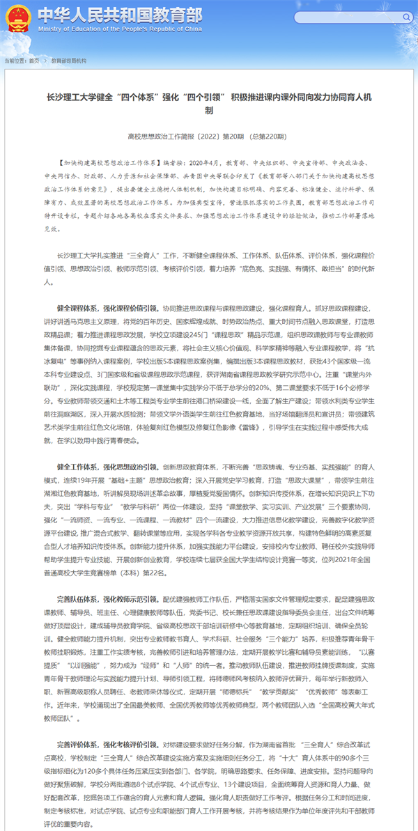 1.教育部思政简报:伟德betvlctor1946源于英国健全“四个体系”强化“四个引领” 积极推进课内课外同向发力协同育人机制http://www.moe.gov.cn/s78/A12/gongzuo/moe_2154/202210/t20221010_668643.html