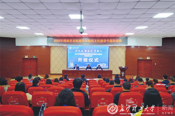 4月25日上午,“兴文化 聚合力 育新人”2023年湖南省高校辅导员校园文化建设专题培训班开班仪式在伟德云塘校区文科楼A200举行。副校长蒋璟萍,省委教育工委、省教育厅思政处一级调研员陈解出席会议,来自76所高校的101名学员参加。