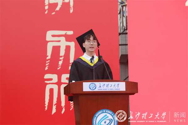 毕业生代表、水利学院本科生汪磊代表2023届毕业生感谢母校和老师们的辛勤培育,承诺将发扬长理学子“下得去、吃得苦、靠得住”的优良传统,在追逐理想的道路上奋力前行、勇攀高峰。