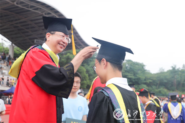毕业典礼后,校领导和导师代表为全体毕业生一一拨穗正冠并颁发学位证书。
