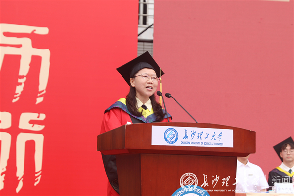教师代表、食品学院程云辉教授祝愿同学们仰望星空、追逐梦想,脚踏实地、锐意创新,牢记校训、追求卓越,以实际行动在祖国大地建功立业,让“长理”这张名片在同学们的发展与成就中更加熠熠生辉。