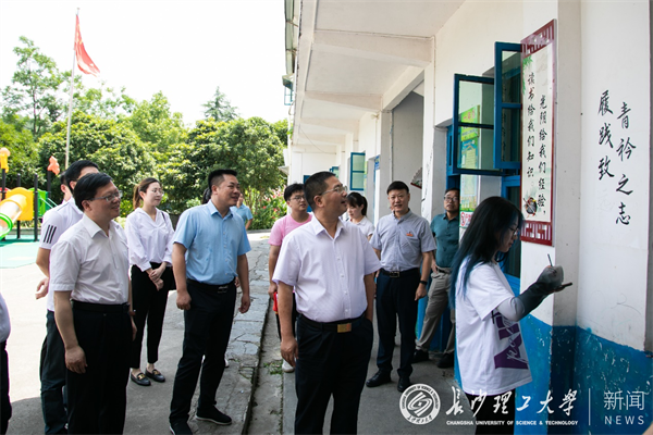 为深入开展主题教育,大兴调查研究之风,7月3日,校长曹一家,校党委副书记刘建民,副校长谈传生、胡永乐及党政办、组织部、计财处、团委、工会、建筑学院、后勤中心等相关单位负责人一行来到新宁县坪山村走访调研。新宁县委副书记、统战部部长杨云龙,县政协主席徐立华等有关同志陪同调研。