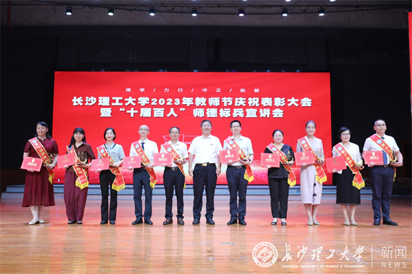 会上,校领导为荣休教职工代表和第十届师德标兵获得者颁发了荣誉证书。活动现场还精心组织了“十届百人”师德标兵回顾音诗画节目《摘星辰的人》,由历届“师德标兵”代表和伟德教师合唱团共同演出,精彩表演获得观众阵阵掌声。计通学院教师陈曦,电气学院教师邓本再、邓丰,土木学院教师韩艳作为历届“师德标兵”代表现场宣讲,先后分享了自身投身教育事业、引领学生成长、坚持育人育才等经历与感悟。
