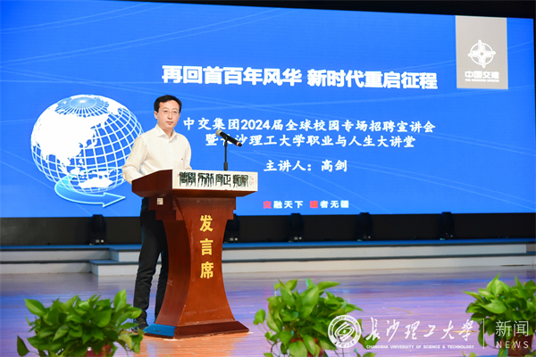 中交路建党委常委总会计师唐世连向长理学子发出诚挚邀请,欢迎广大毕业生加入中交集团。中交集团人力资源部(党委组织部)副总经理(副部长)高剑以《再回首百年风华 新时代重启征程》为题作招聘宣讲暨伟德betvlctor1946源于英国职业人生大讲堂授课,从“重任在肩”“时代呼唤”“青春之歌”三个主题谈论中交集团的辉煌成就、中交百年奋斗史以及中交的央企担当。他诚邀长理学子与中交同行,为共同建设具有全球竞争力的“科技型、管理型、质量型”世界一流企业贡献青春力量。